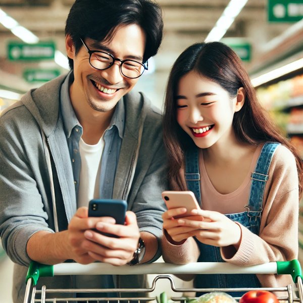 Before checkout, we each guess the total price of the items in our cart, type it into our phones, and reveal our numbers at same time.