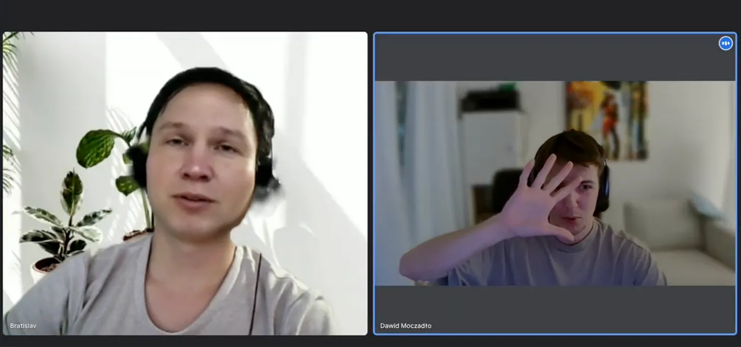 To verify, the interviewer asked him to turn off the video background filter and raise his right hand.